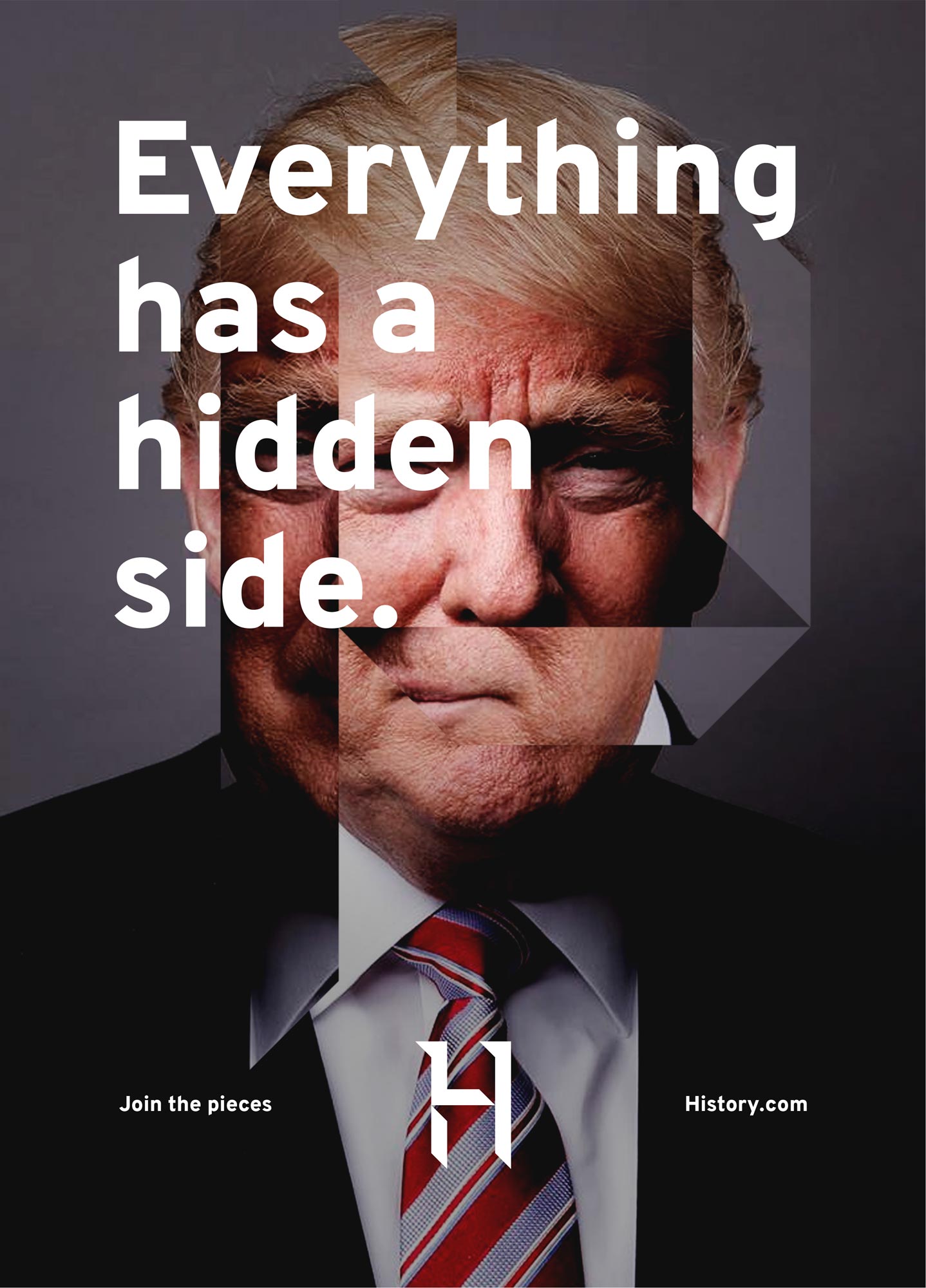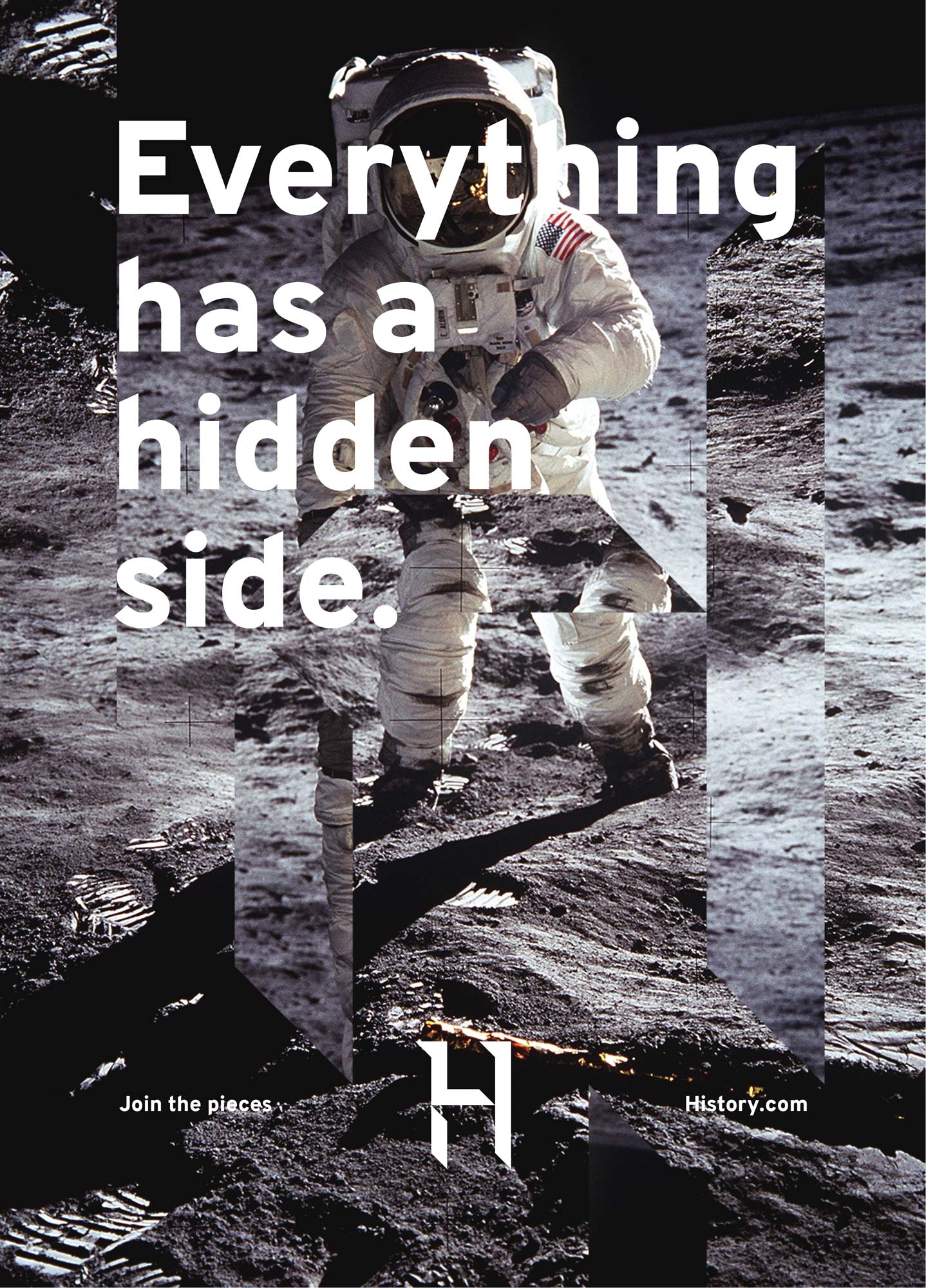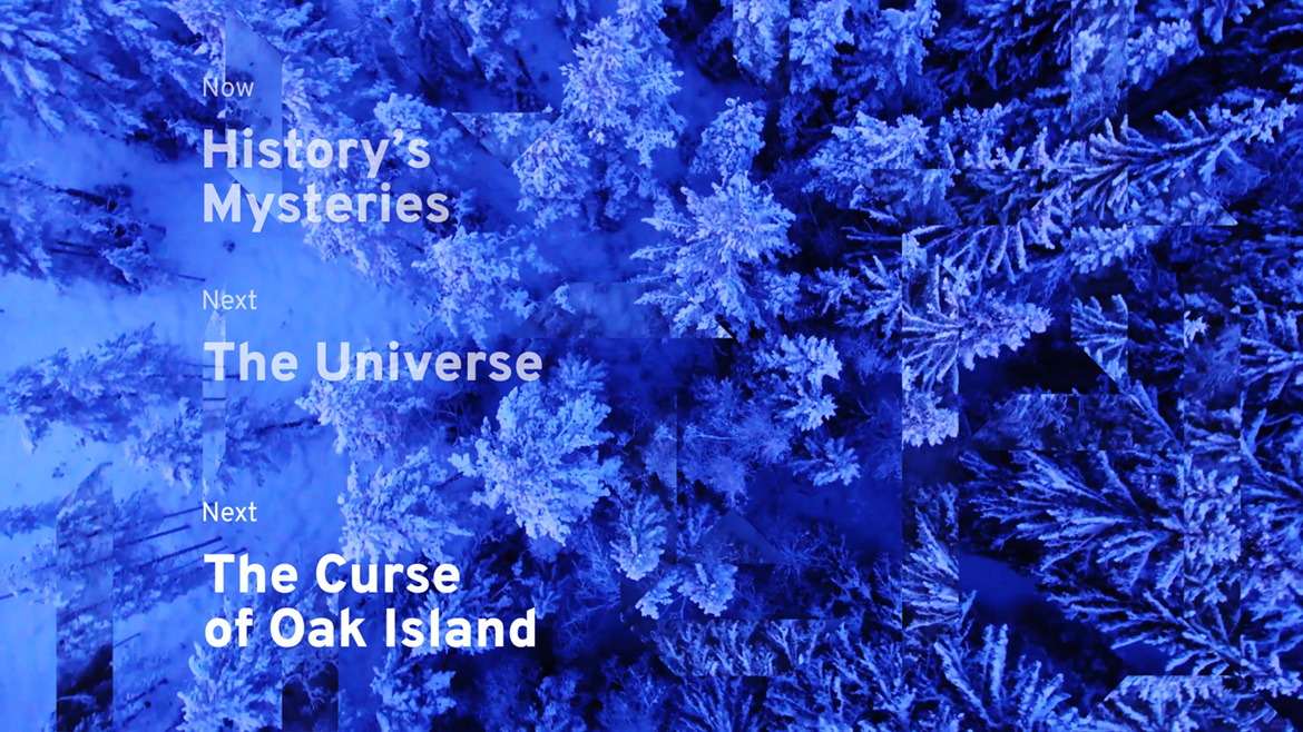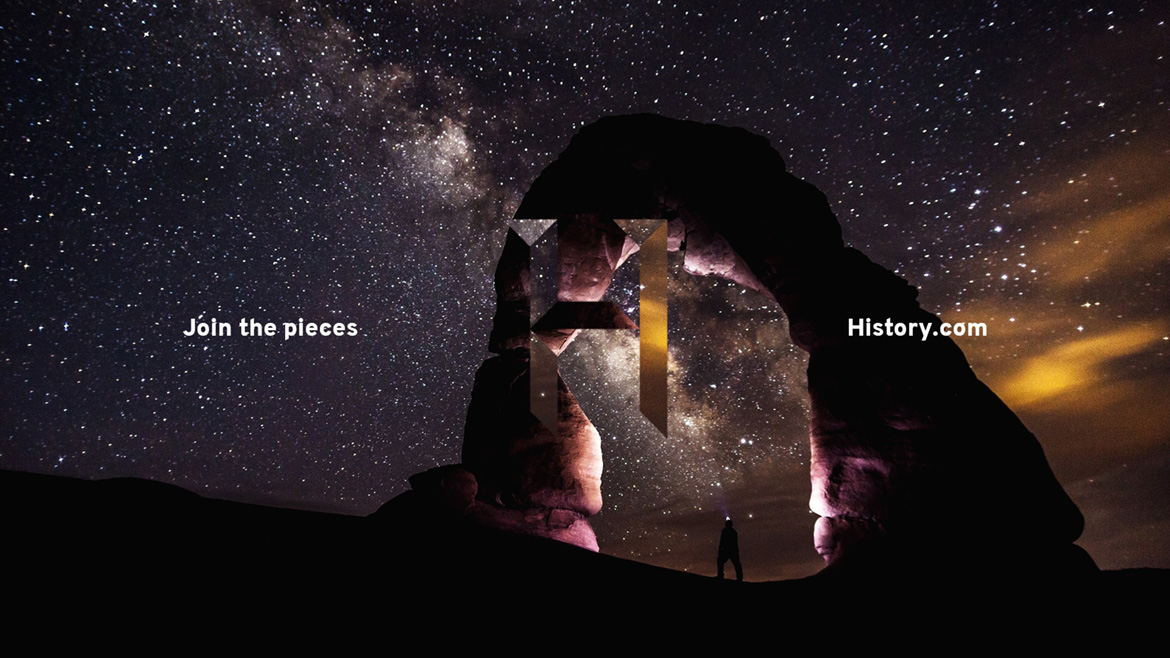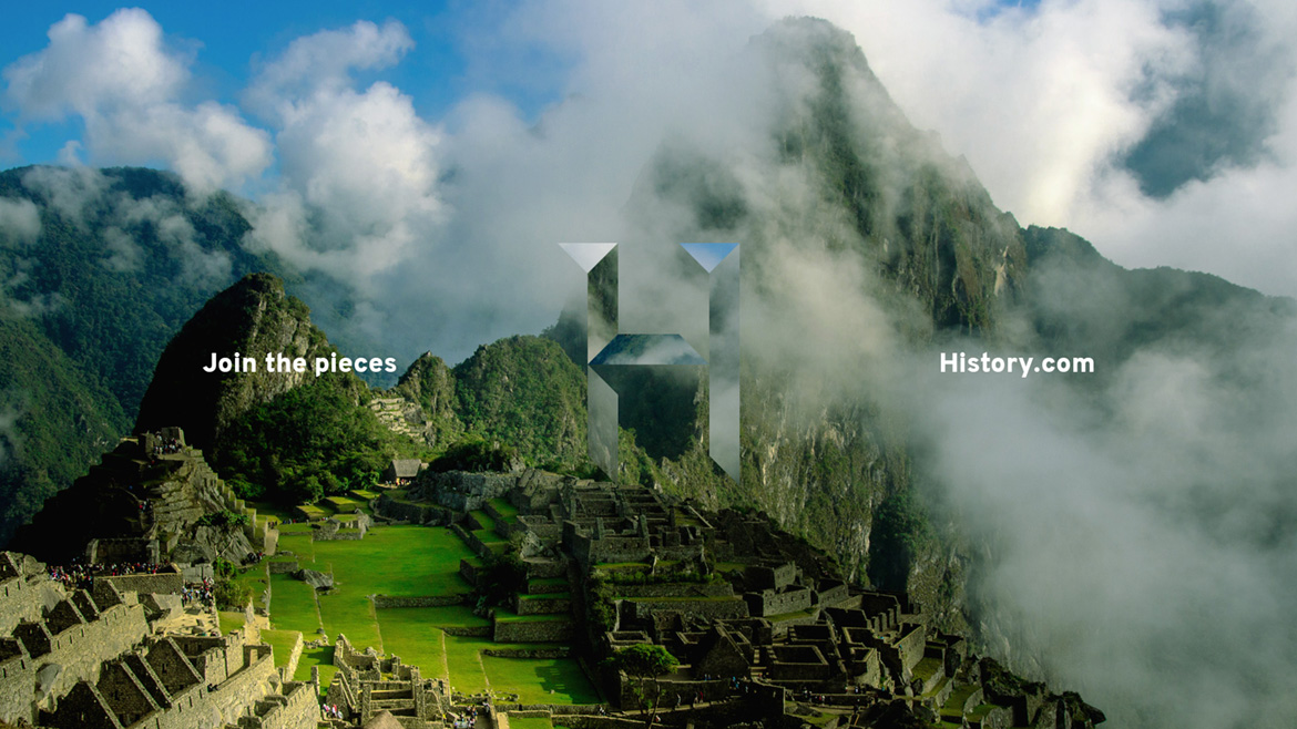 Rebrand concept for History Channel. Inspired by the "join the pieces" idea, I reimagined the channel's identity, playing with hidden and shown elements, from the logo to the channel idents.