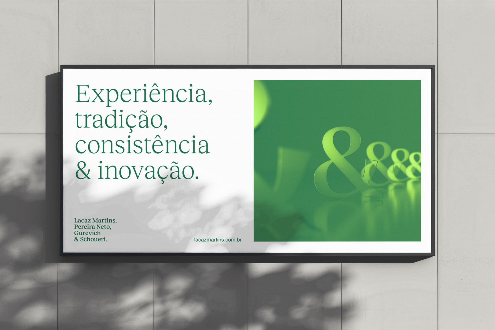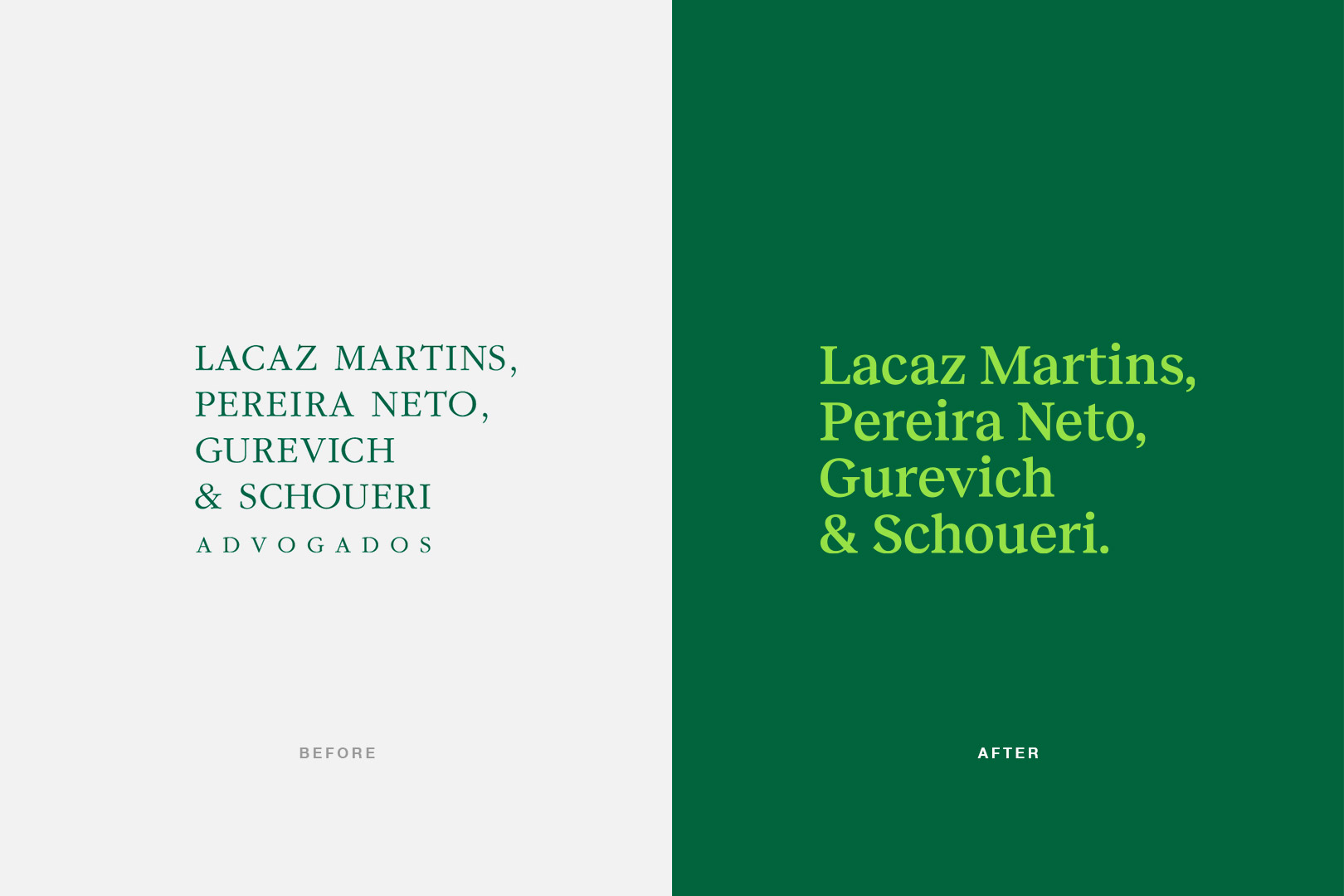 Lacaz Martins, Pereira Neto, Gurevich & Schoueri is a full-service law firm with over 30 years of experience in the legal market. At Monq, we collaborated closely with their team to develop brand strategy poised to shape their future. Inspired by the structure of the office's name, we extracted a powerful element that embodies their essence from verbal to visual identity.